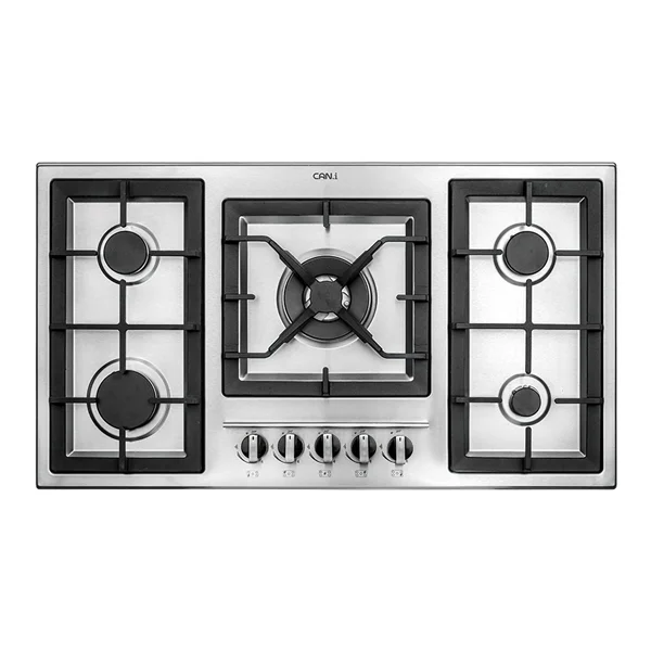 ◀ چیدمان ۵ شعله با پلوپز مرکزی فضای کار مناسبی برای قابلمه های بزرگ و هم زمان فراهم می کند.